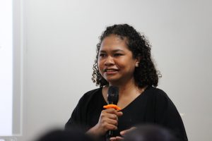 The MC invited the speaker to the front, and the moderator greeted the participants by asking about their country of origin. The speaker began the session by introducing as a socio-preneur in Indonesia. DuAnyam has been operating for 10 years, and this year marks the 11th year. The company works with more than 1,200 artisans and currently collaborates with one of the biggest retailer companies in the world. Initially established in NTT (East Nusa Tenggara), DuAnyam was founded with the goal of empowering housewives to earn an income. Indonesia’s status as an archipelagic country makes shipping costs expensive, but the region also possesses inherited skills and local wisdom. These factors led to the birth of DuAnyam.