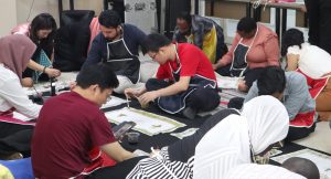 After completing the coloring process, the participants set their batik pieces out to dry. Once dried, the artworks would serve as unique souvenirs for the participants to take back to their respective countries, marking a memorable experience from their time at the workshop.